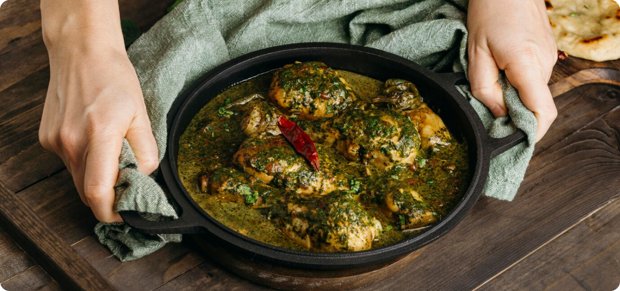 Chefs authentic recipe made with local fresh tomatoes /butter and aromatic spices. Choice : chicken/lamb/paneer/veggies.